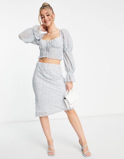 Love Triangle midi skirt in blue ditsy floral co-ord - LBLUE