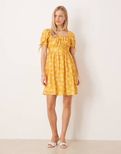 Lovedrobe Elasticated square neck short sleeve mini dress in marigold