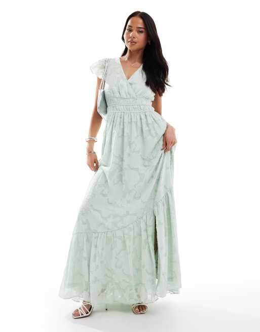Lovedrobe Floral faux wrap maxi dress in sage green