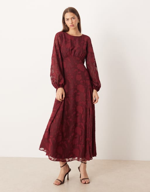 Lovedrobe Long sleeve keyhole back midaxi dress in red
