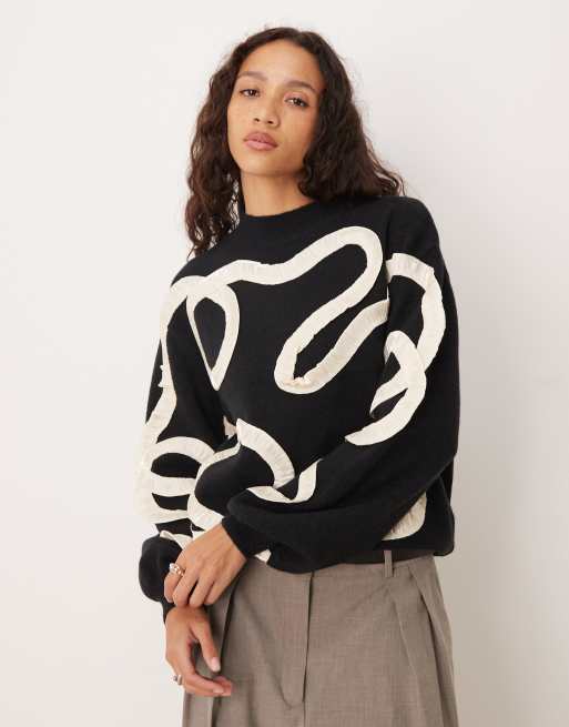Lovedrobe Satin squiggle applique jumper in black