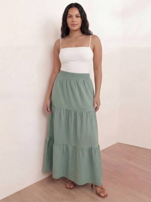 Lovedrobe Shirred waist tiered maxi skirt in sea green