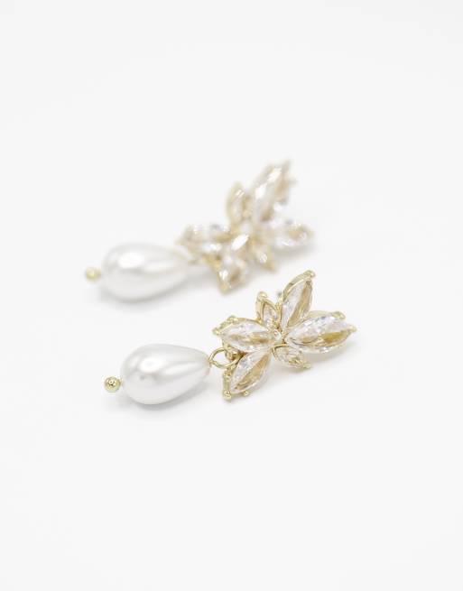 Lovisa Gold large marquise pearl drop earrings in gold