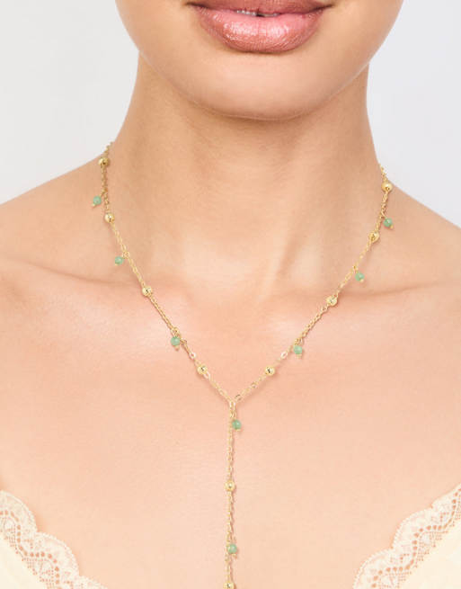 Lovisa Gold plated green semi precious ball y-necklace in gold