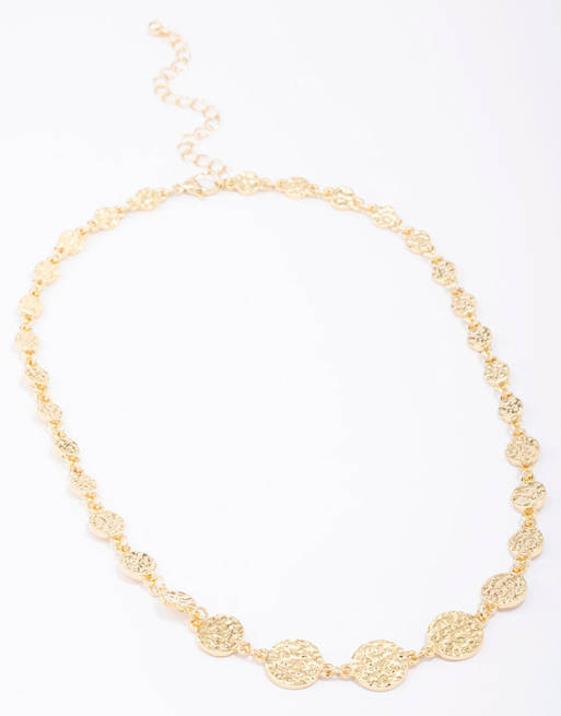 Lovisa Gold plated hammered disc chain necklace in gold
