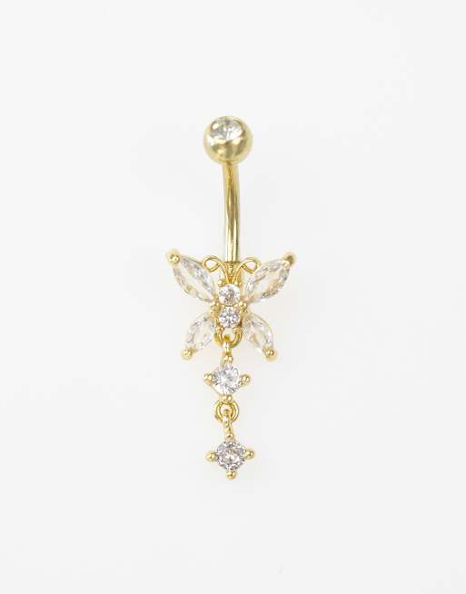 Lovisa gold plated surgical steel crystal belly bar in gold