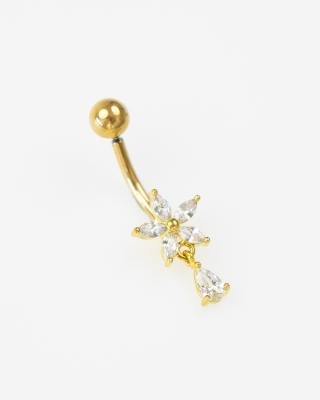 Lovisa gold plated surgical steel cubic zirconia flower belly ring in gold