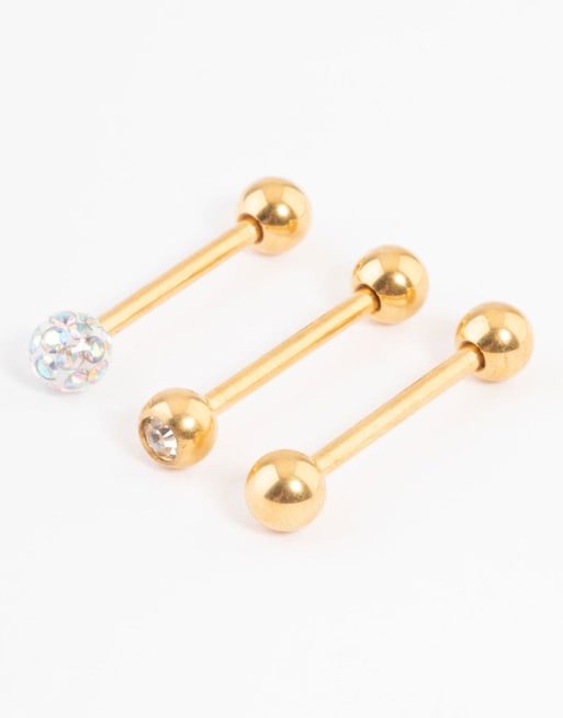 Lovisa Gold plated titanium pave ball tongue piercing pack in gold