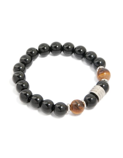 Lovisa Mens waterproof stainless steel large beaded stretch bracelet in black