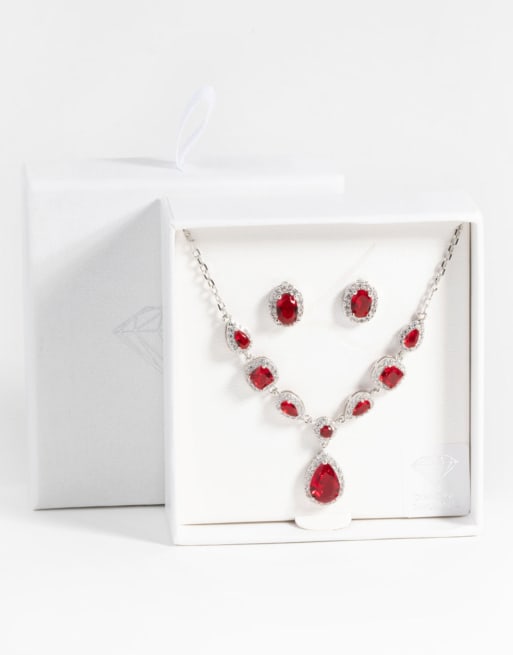 Lovisa Ruby diamond simulant oval necklace & earrings set in silver