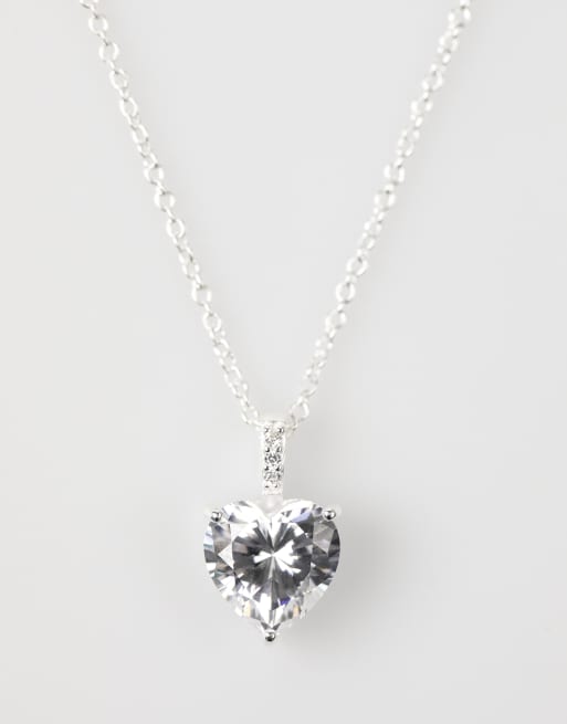 Lovisa Sterling silver cubic zirconia heart necklace in silver