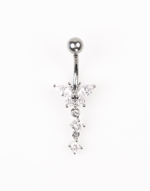 Lovisa Titanium cubic zirconia butterfly drop belly piercing in silver