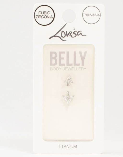 Lovisa Titanium double pointy flower belly bar in silver