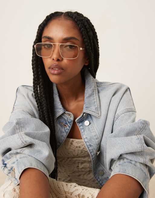 Lu Goldie Billie rectangle aviator sunglasses in tan