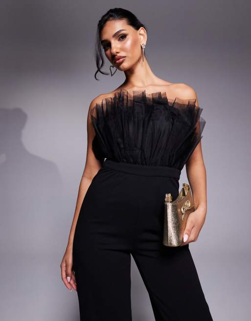 Lulus tulle bandeau top jumpsuit in black