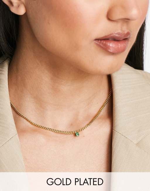 Luv AJ 14k gold plated bardot emerald pendant necklace