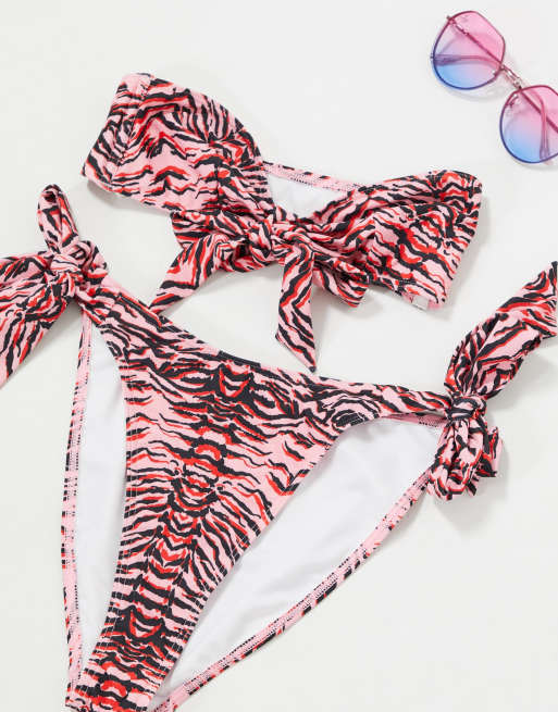 Luxe Palm Tiger Bow Tie Bandeau bikini top