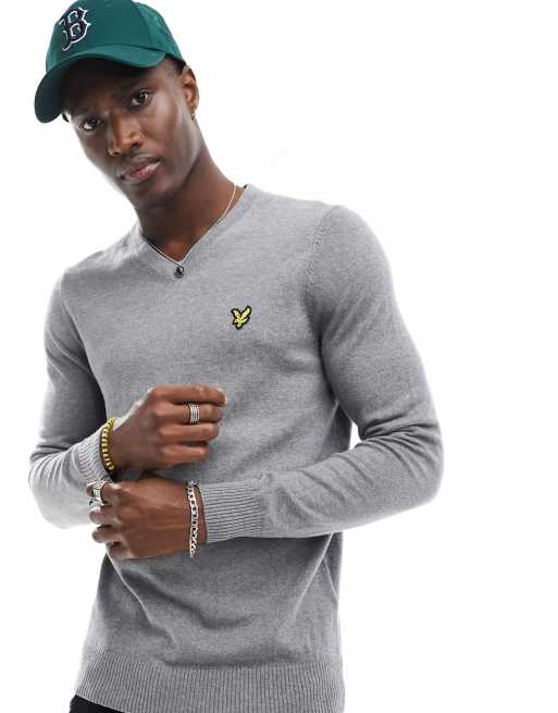 Lyle & Scott Cotton Merino V Neck Jumper in Grey