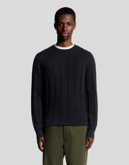 Lyle & Scott drop stitch rib knitted crew neck jumper in deep navy