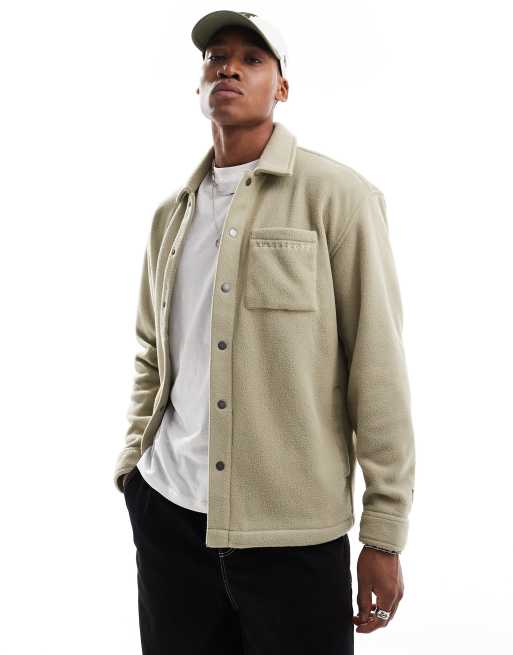 Lyle & Scott embroidered fleece overshirt in green