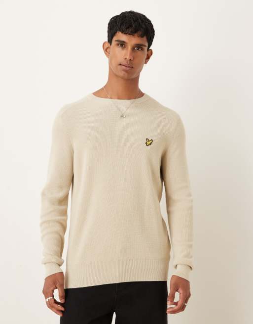 Lyle & Scott engineered rib crew neck in grey taupe