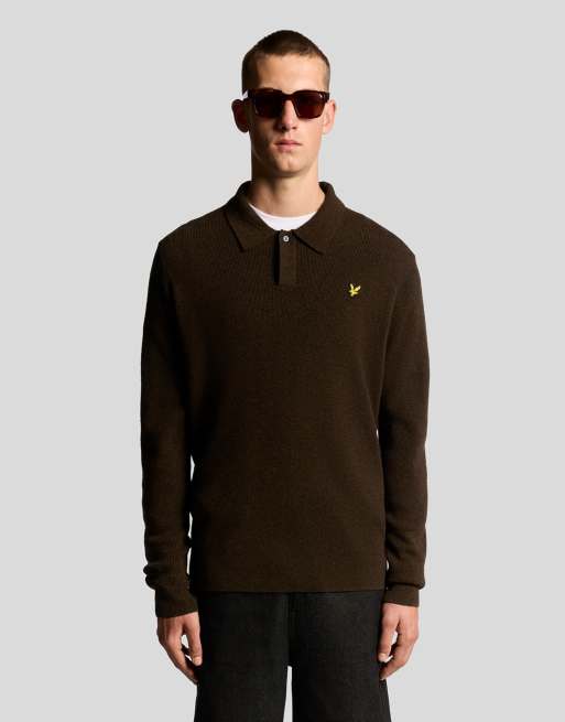 Lyle & Scott fair isle knitted polo shirt in brass