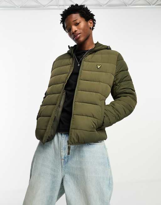 Lyle & Scott icon logo lightweight hooded puffer jacket in olive green