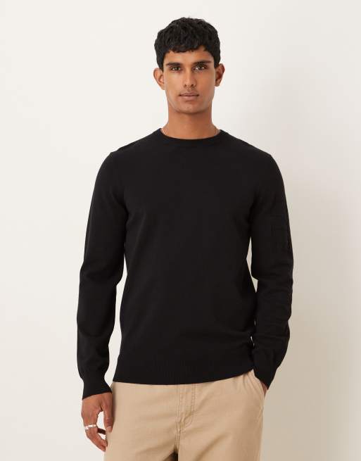 Lyle & Scott mesh logo crew neck jumper in jet black