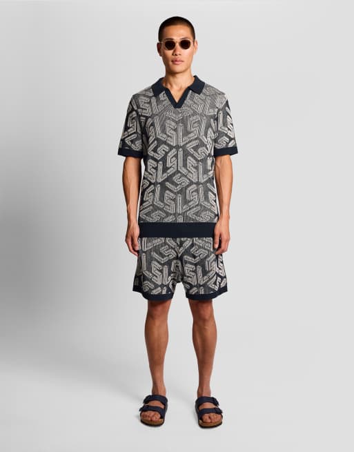Lyle & Scott Mid knits ribbed emblem knitted short in x336 dark navy/ cove