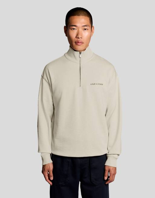 Lyle & Scott Mid layers script heavyweight loopback quarter zip sweatshirt in y147 ice cream marl