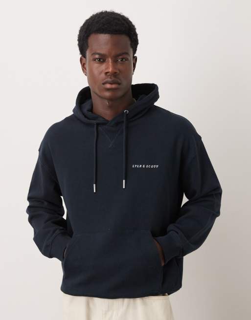 Lyle & Scott script brushback pullover hoodie in dark navy