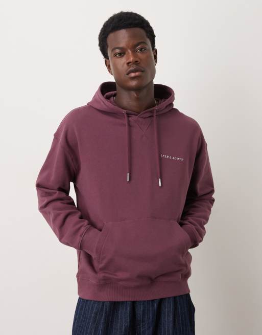Lyle & Scott script brushback pullover hoodie in dusky maroon