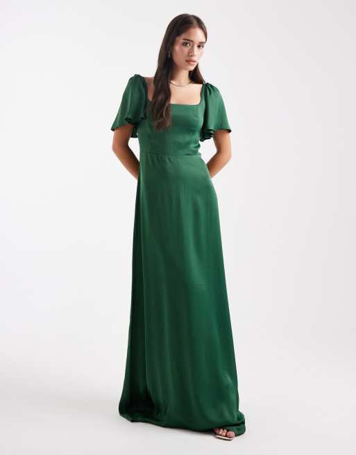 Maids to Measure Bridesmaid square neck flutter sleeve maxi dress in emerald
