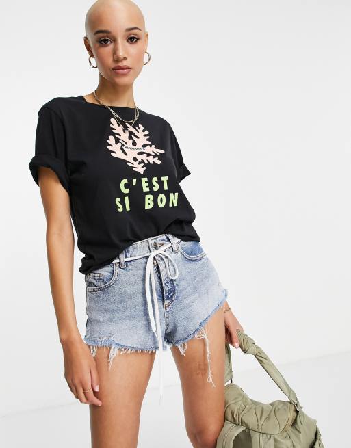 Maison Scotch cotton clean t-shirt with bright artwork in black - BLACK