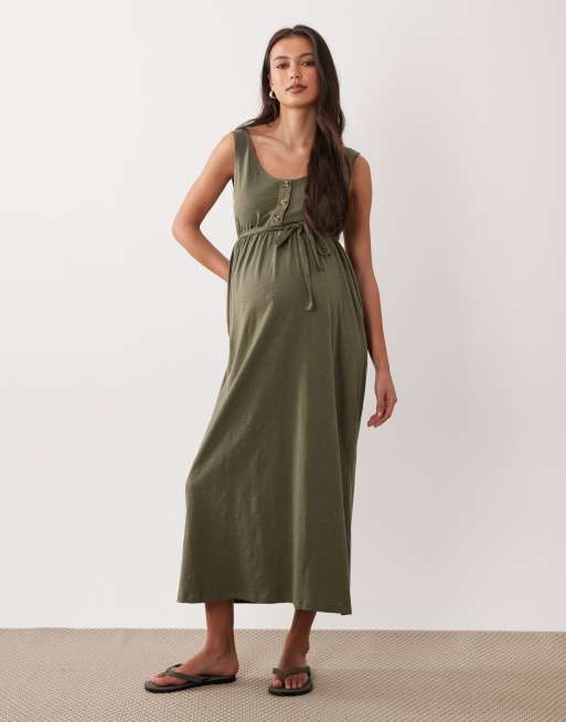Mamalicious Maternity 2 function nursing button through maxi sundress in dark khaki