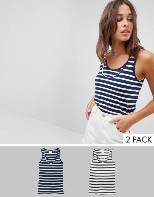 Mamalicious Maternity 2 pack cotton nursing vests in mixed stripe - MULTI