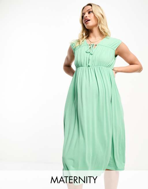 Mamalicious Maternity gathered bodice sleeveless maxi dress in green