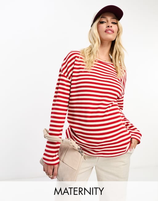 Mamalicious Maternity long sleeve knitted jumper in red and white stripes