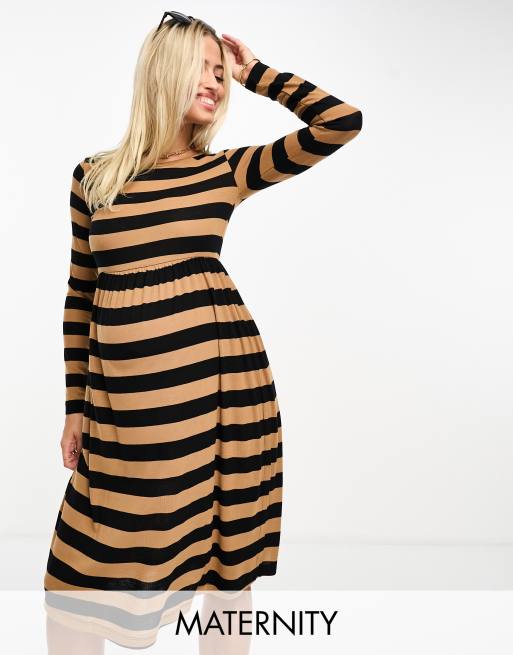 Mamalicious Maternity long sleeve mini dress in black stripe