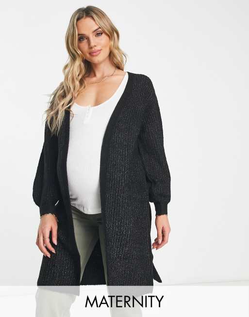 Mamalicious Maternity longline wrap belted cardigan in black