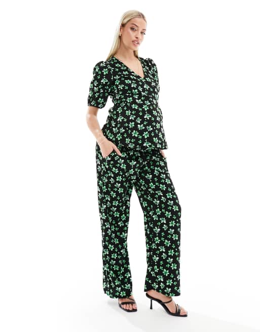Mamalicious Maternity nursing wrap top and trouser co-ord in palm flower print