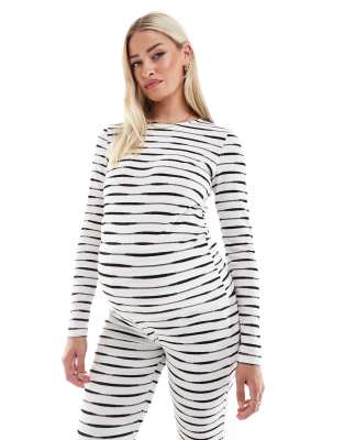 Mamalicious Maternity ribbed jersey top co-ord in mono spacedye