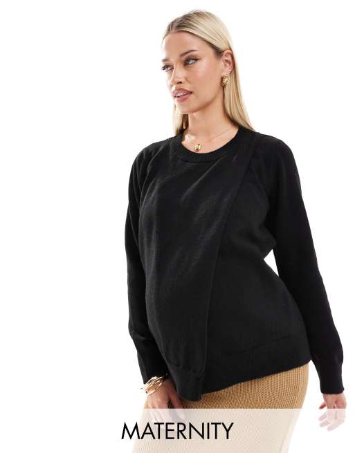 Mamalicious maternity split front jumper with nursing functionality in black