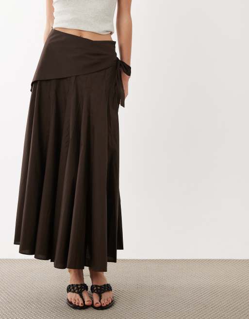 Mango 100% cotton maxi skirt with scarf in brown
