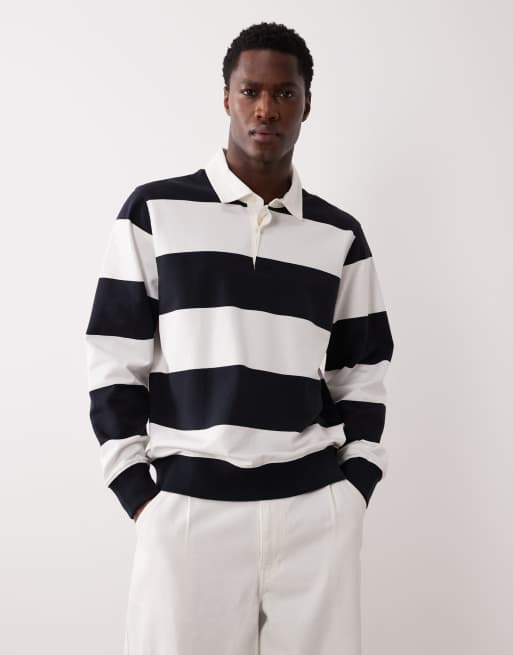 Mango 100% cotton rugby polo top in black and white stripe
