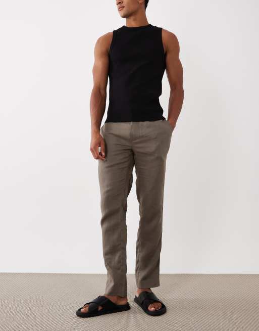 Mango 100% linen straight fit trousers in charcoal