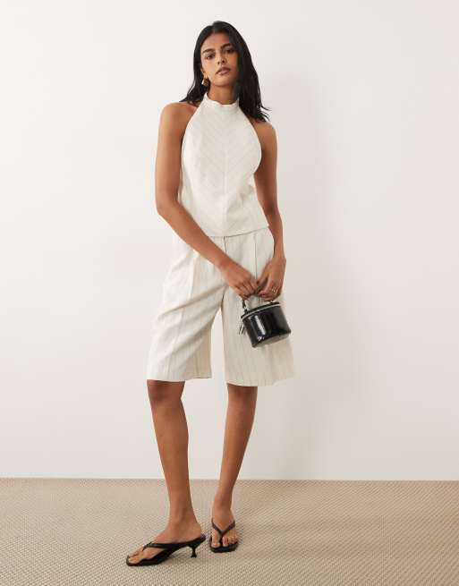 Mango Argelia halterneck top & short co-ord in cream stripe