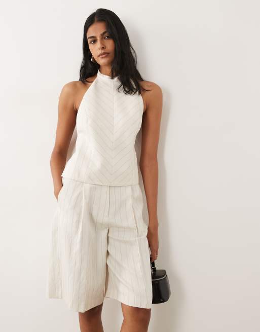 Mango Argelia linen mix bermuda short co-ord in cream stripe