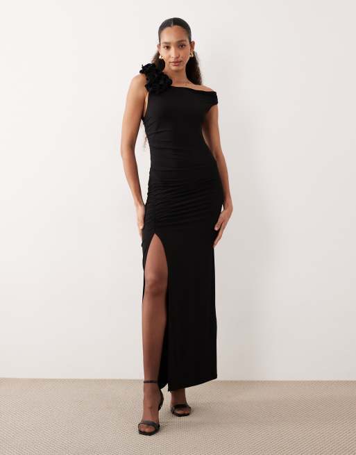 Mango asymmetric sleeveless maxi dress with statement shoulder in black