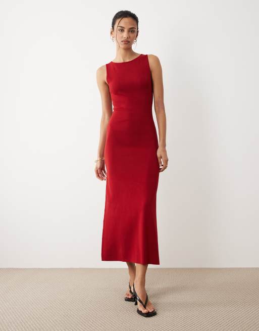Mango boat neck sleeveless midi dress in red